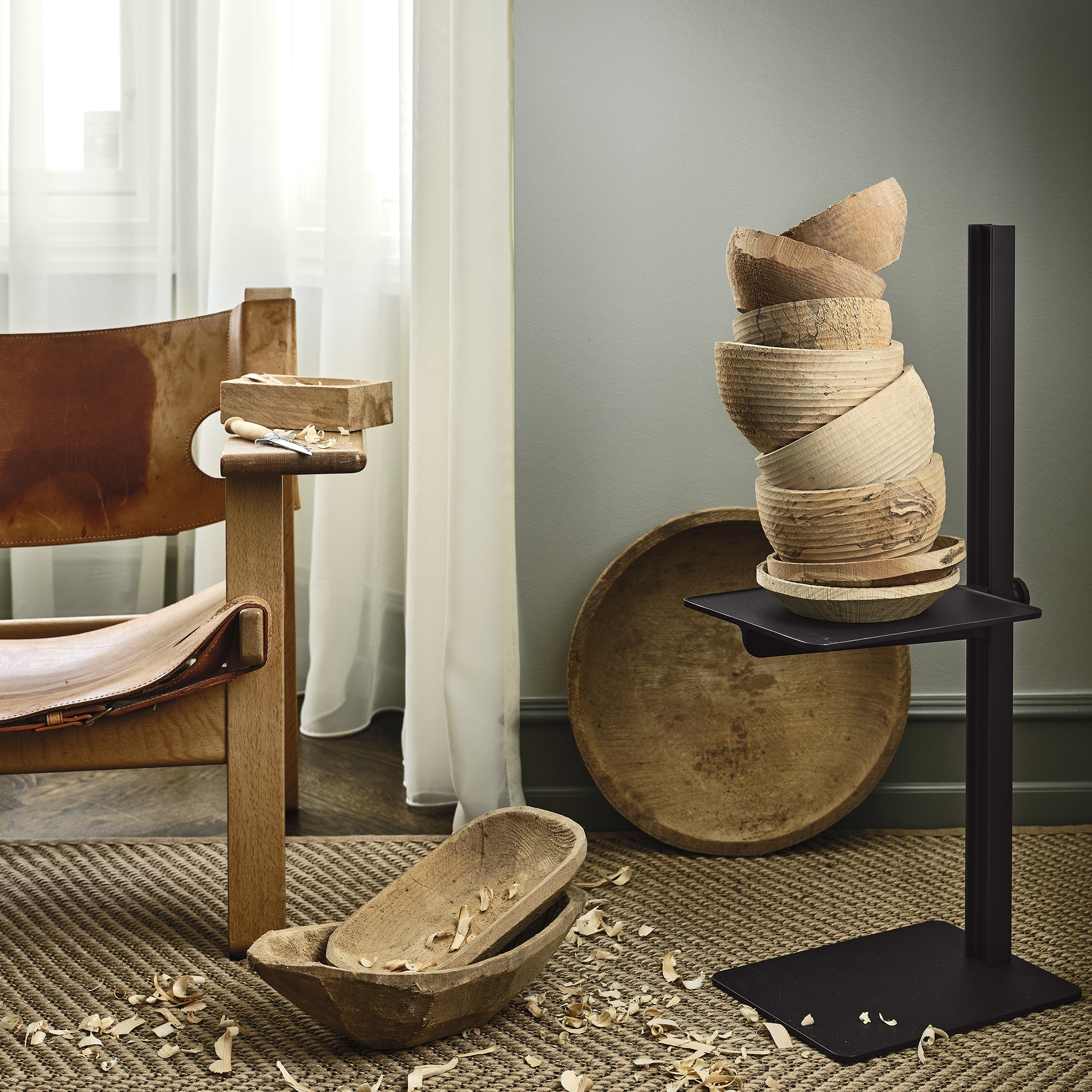 Museum Sidetable is a height-adjustable table in aluminium and steel. It has a variety of uses: a flower pedestal, a small extra table by the sofa, bedside table, hallway table and more. The highest height is 73cm, and the lowest height is 32cm.