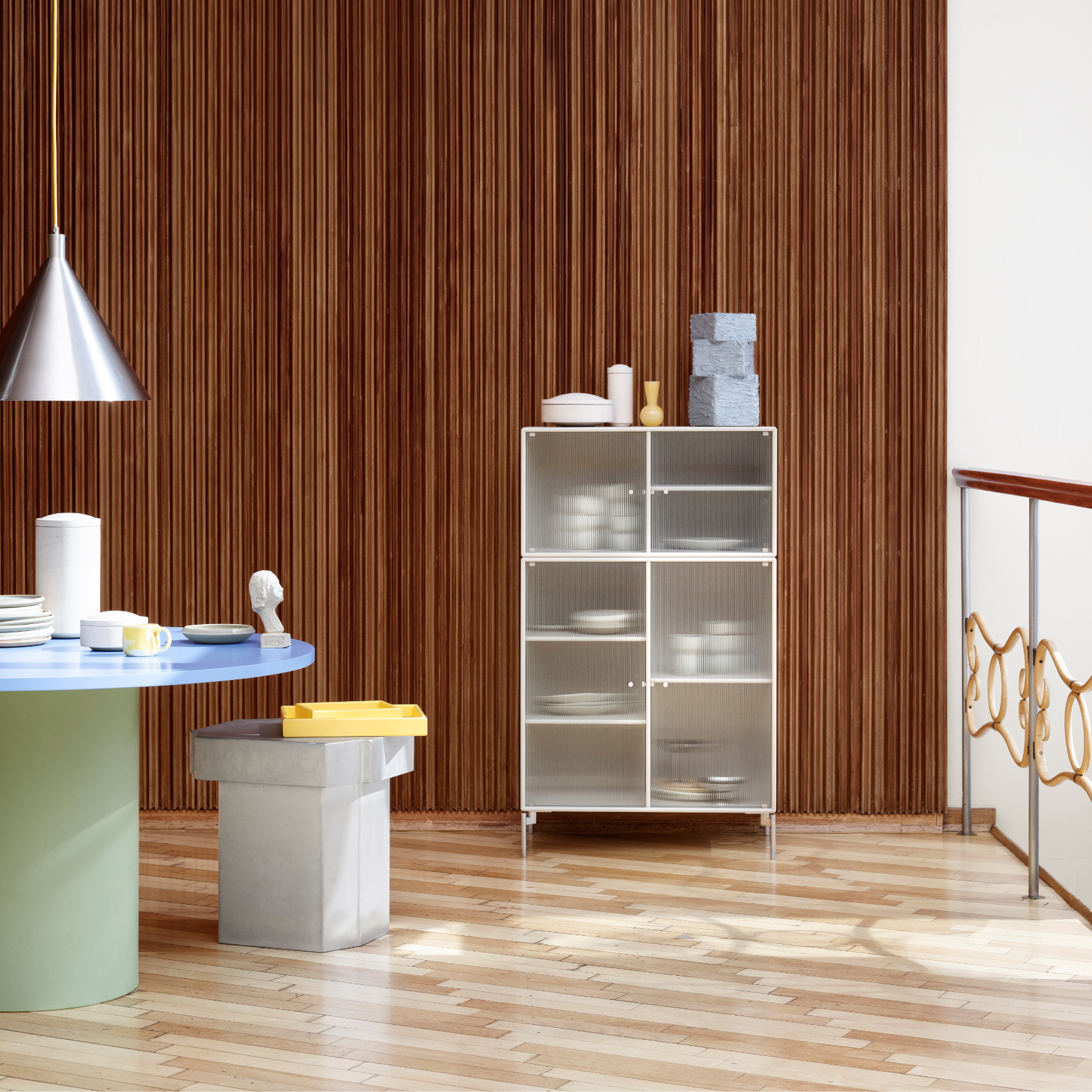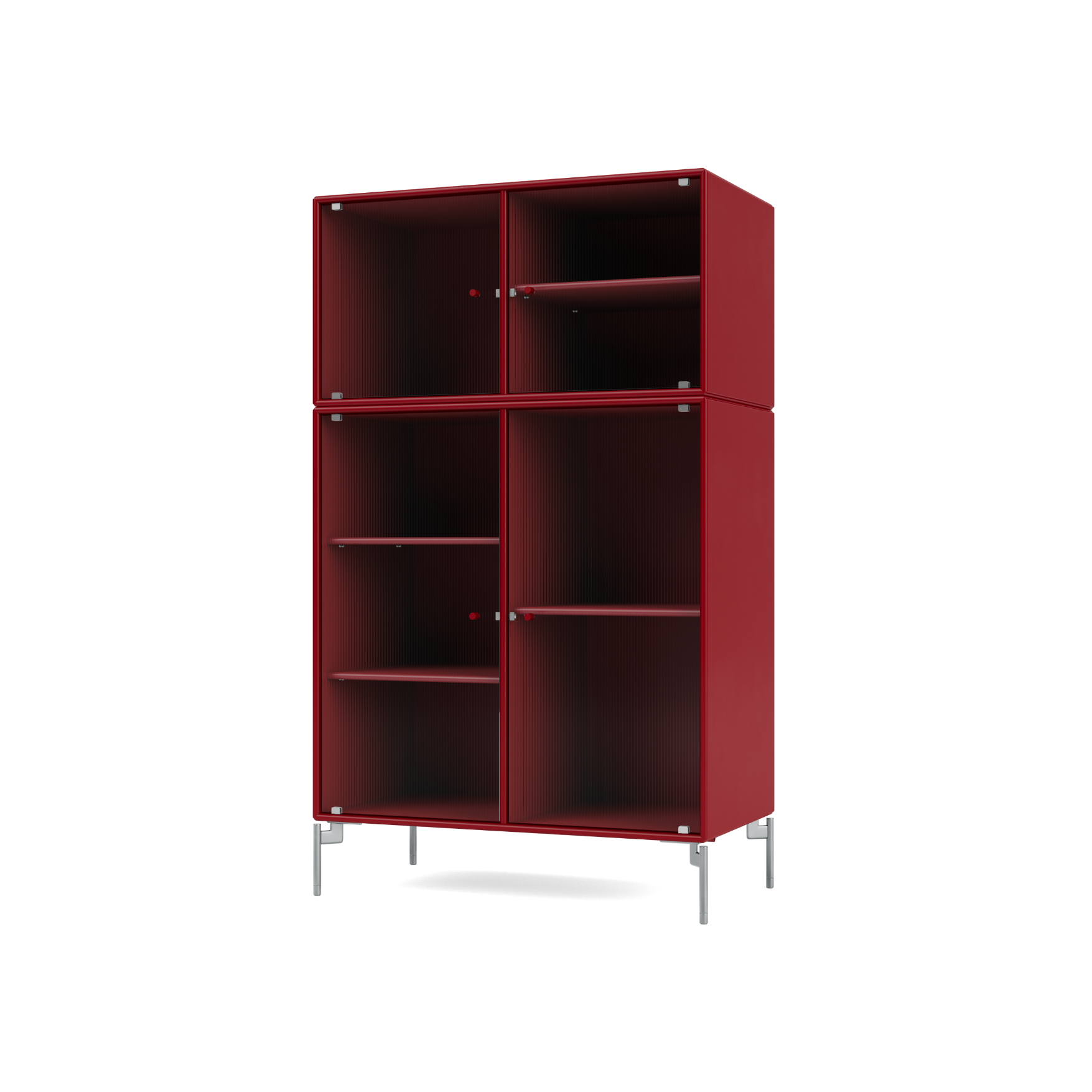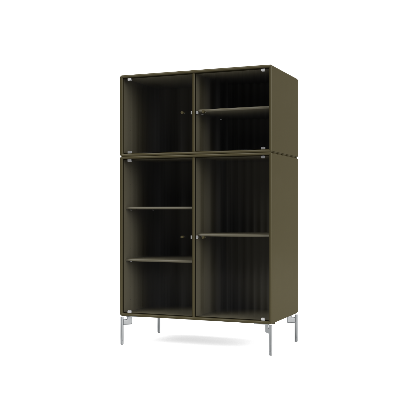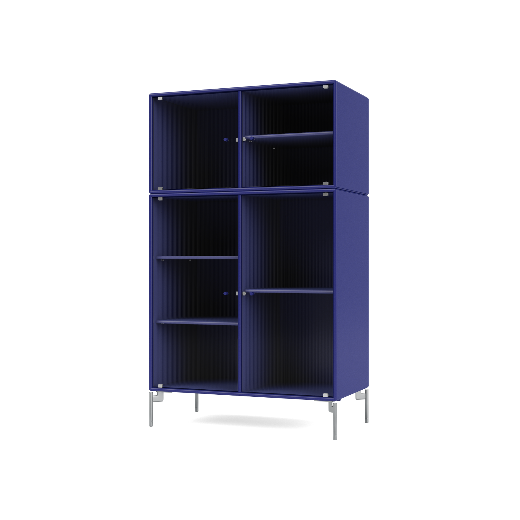RIPPLE III is a medium-sized vitrine with 4 doors in rippled glass. The cabinet can be used as a highboard in the living room or for displaying tableware in the kitchen or dining area. The top of the cabinet is an ideal display surface for lamps, vases, and other decorative items.
